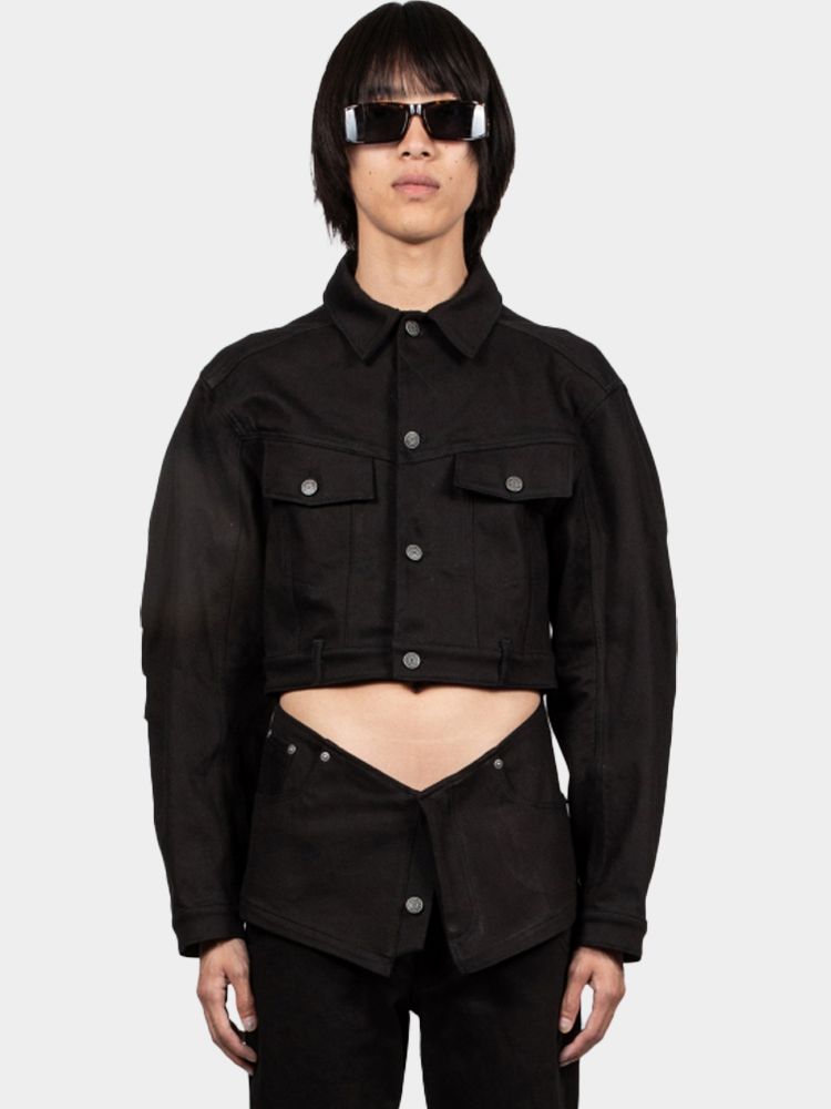 컷아웃 데님 재킷 블랙 스톤워시 SS24 OU 003 C