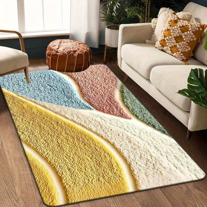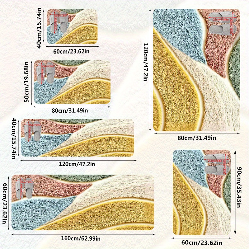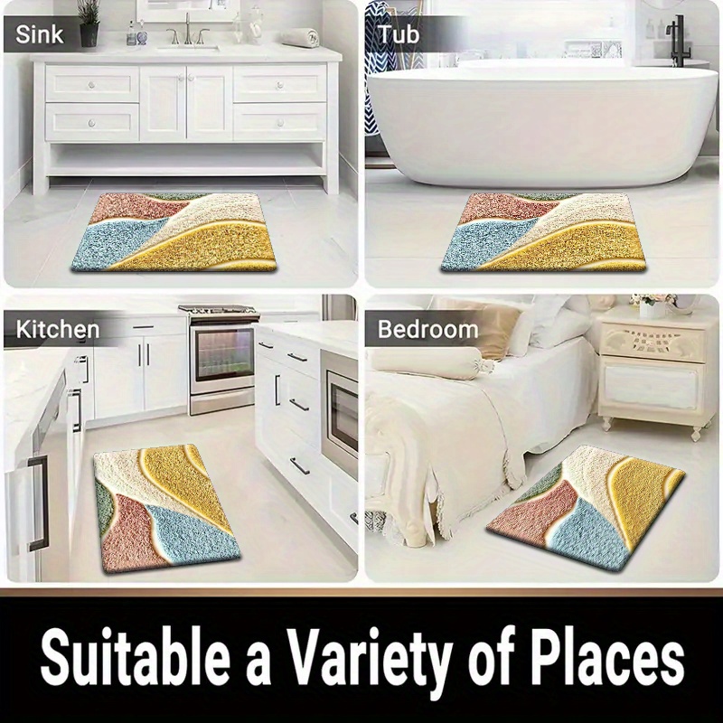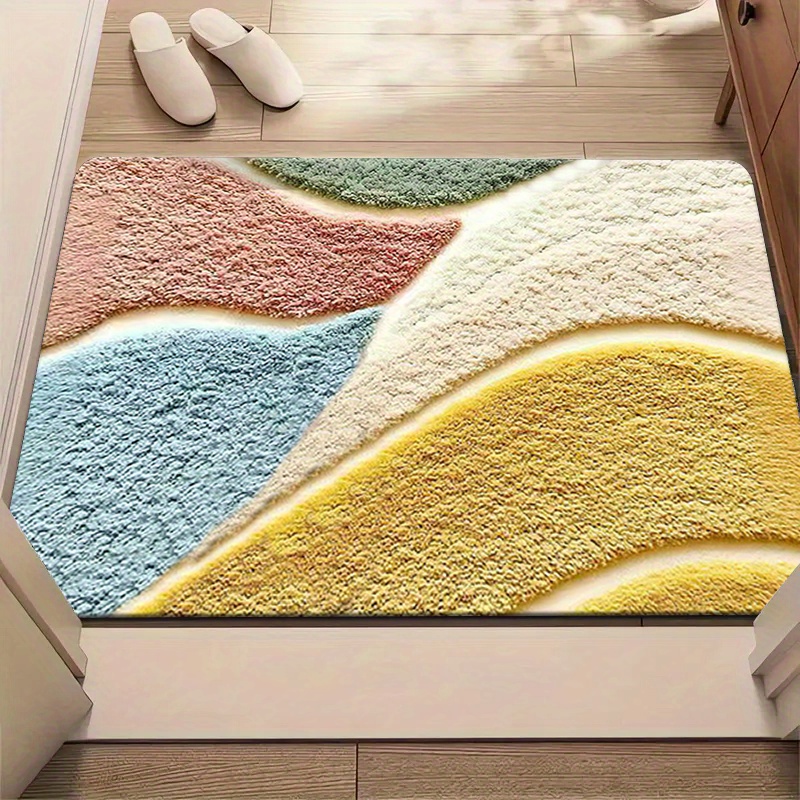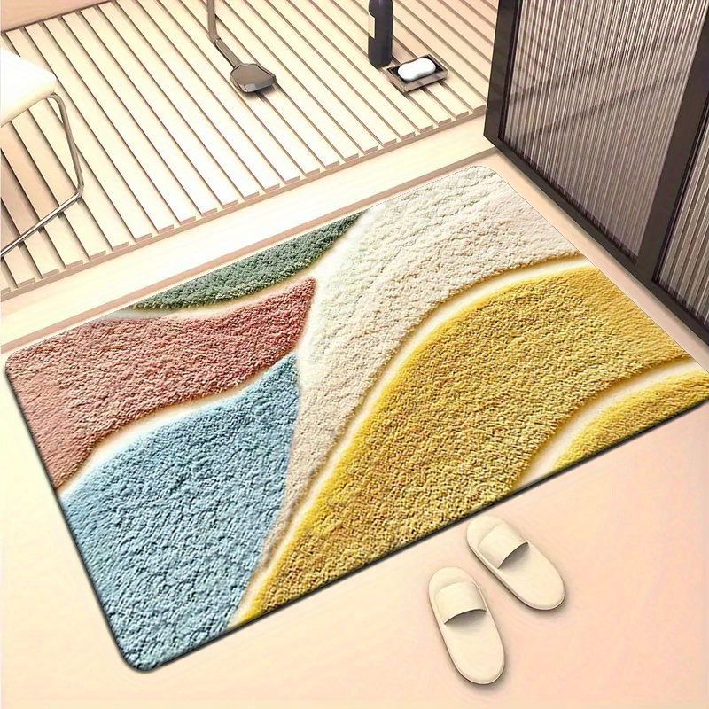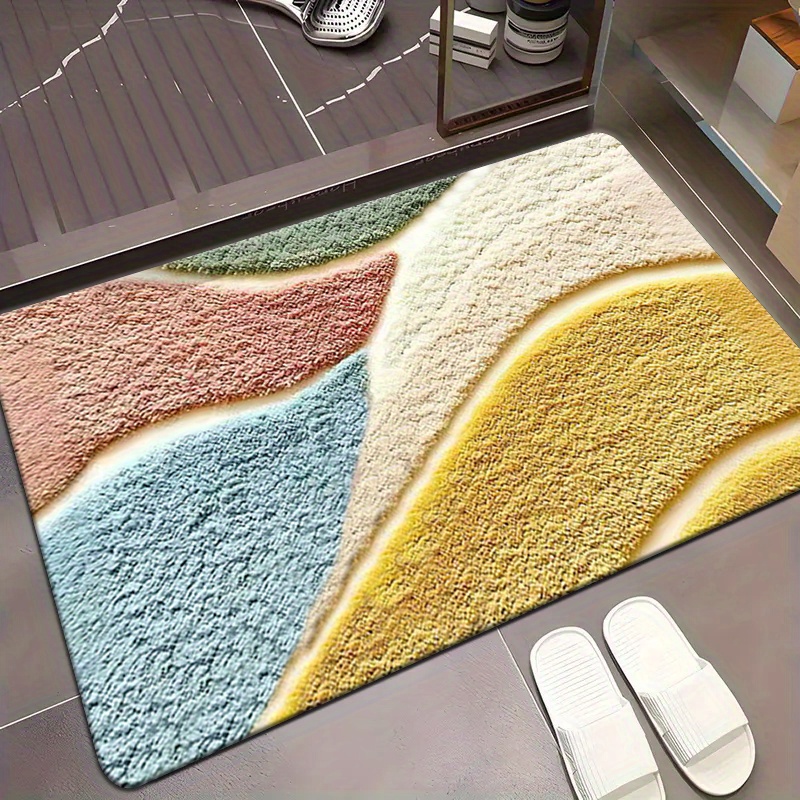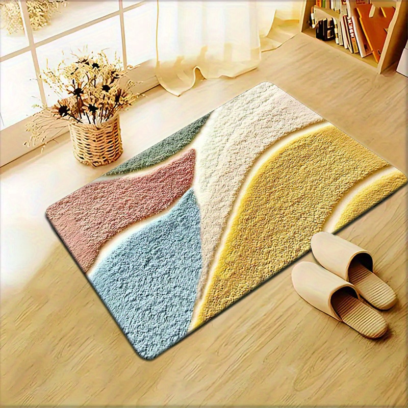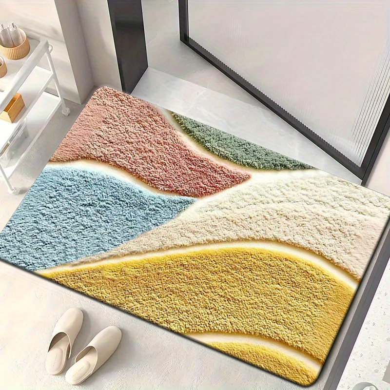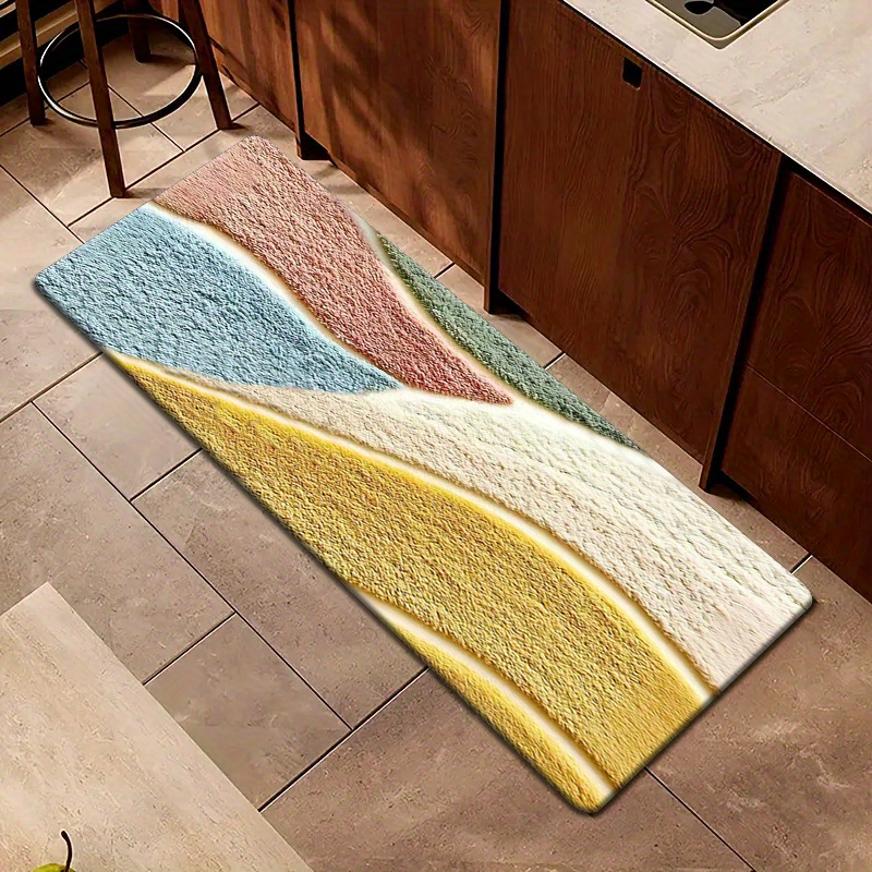 1개, 고급스러운 감촉의 컬러풀 기하학 패턴 플리스 매트, 미세 섬유, 세탁기 사용 가능, 미끄럼 방지, 주방·욕실·샤워룸 장식용, 긴 길이 홀웨이/주방 매트